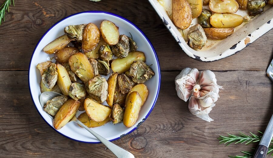 Roast Artichokes And New Potatoes Recipe Riverford