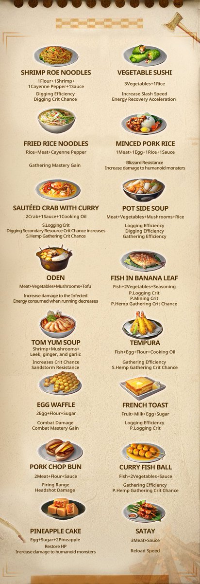 A complete guide to food recipes. Starting with with some really basic ones and then going to some that need items that you need to cook first like flour. In lifeafter food doesn t just keep your character alive some of them may come with special effects such as. Action tim march 15 2019.